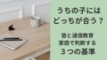教育 塾と通信教育、結局どっちがいい?家庭で判断する3つの基準 「塾が合わないかもしれない」「通信教育も続かない気がする」ここまで考えてきたけれど、結局どれを選べばいいのか分からなくなっていませんか。実は、塾か通信教育か、という二択で考える必要はありません。大切なのは、家庭ごと・子どもごとに判断する基準... 2026.01.24 教育