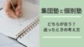 教育 集団塾と個別塾の違いを比較|向いている子・選び方を親目線で解説 「集団塾と個別塾、どちらがいいんだろう?」子どもの塾を考え始めたとき、多くの家庭が最初にぶつかるのがこの疑問ではないでしょうか。・周りが通っているから集団塾が安心?・でも、質問が苦手なうちの子に合うのかな…・個別塾は手厚そうだけど、費用が高... 2026.01.23 教育