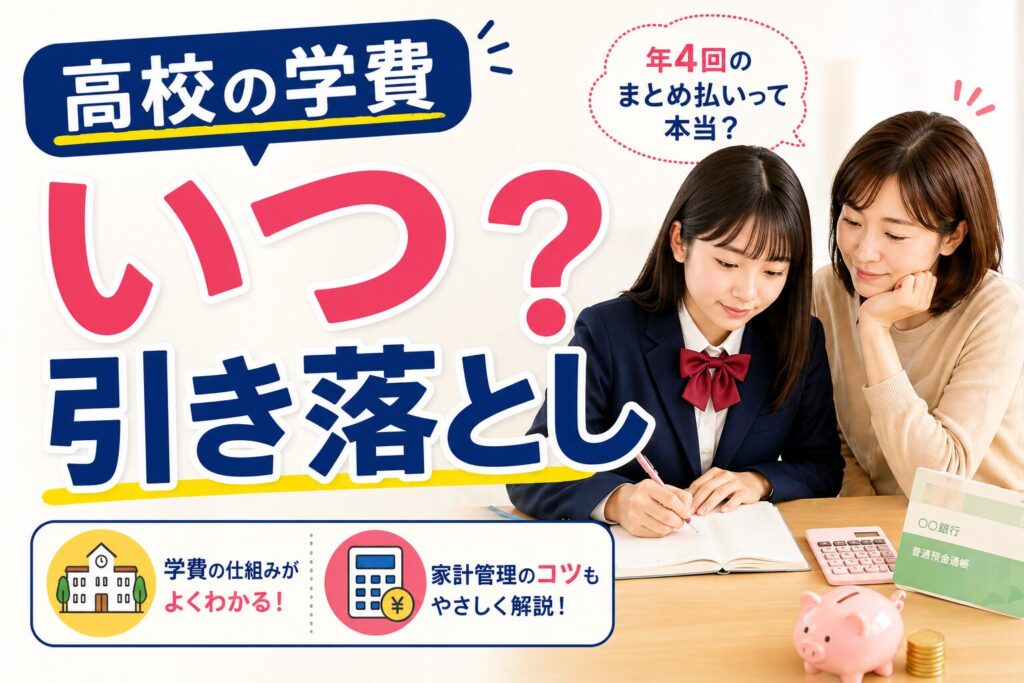高校の学費は毎月引き落としとは限りません。わが家の私立高校は年4回のまとめ払い。実際の引き落としスケジュールと、家計管理のコツを体験談ベースでお伝えします。 -
